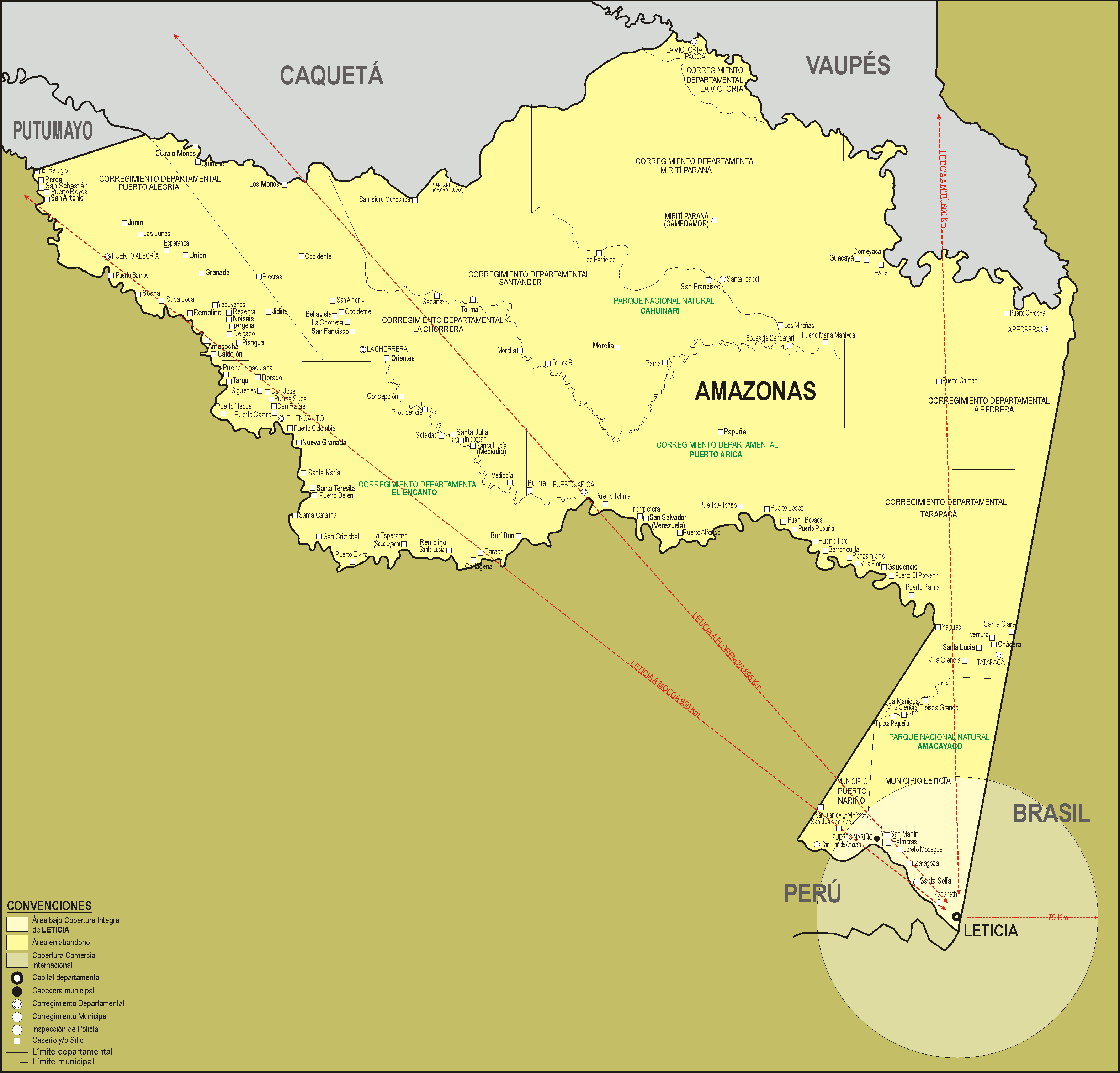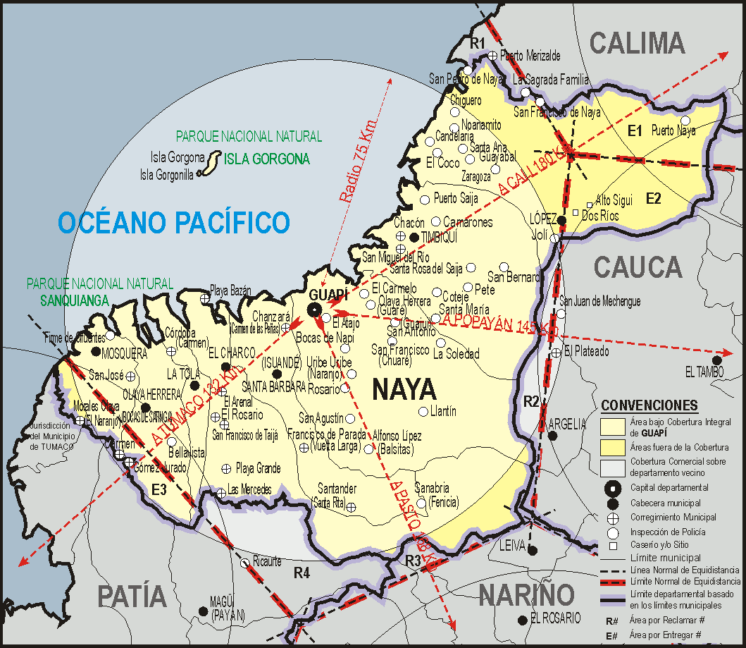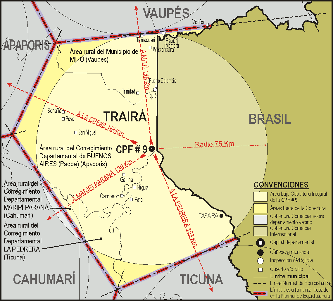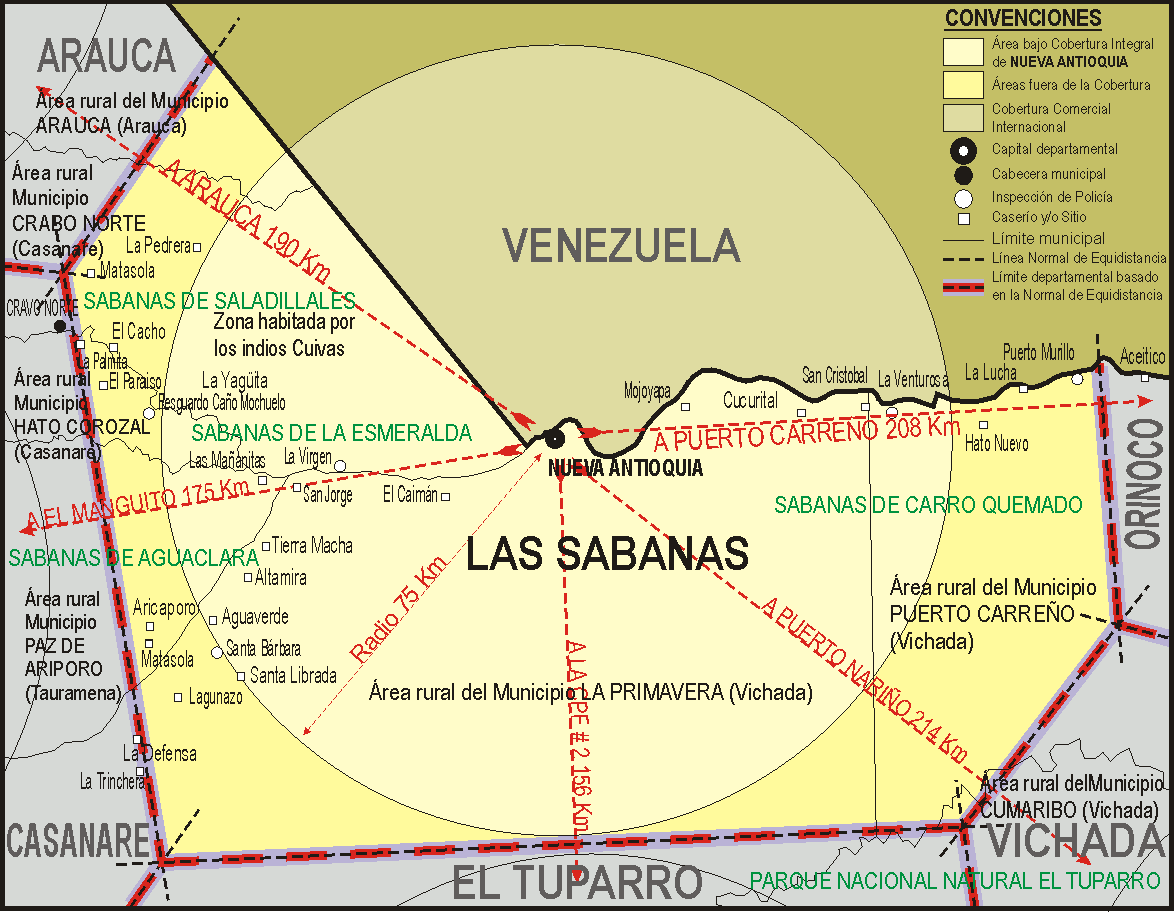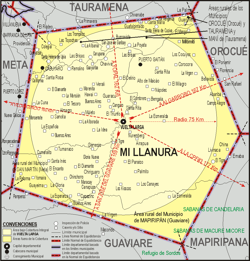 En el campo del estudio de la población se determinaron en 1987 el número de municipios, habitantes y densidad poblacional en cada una de las áreas citadas en el numeral anterior con el fin de medir la influencia que sobre este particular ejerce la ubicación de la capital departamental; y ahora, (2010) también se incluyen los corregimientos departamentales, corregimientos municipales, inspecciones de policía y sitios o caseríos que figuran el MAPA DE ENTIDADES TERRITORIALES editado por el Instituto Geográfico Agustín Codazzi SIGAC en 2006 cuyo esquema puede verse en el Mapa 10. Conjuntos y zonas en abandono. 4 - ESTUDIO DE COBERTURA DE COSTAS En este estudio se determina la extensión de costas bajo cobertura de las capitales y las que permanecen en abandono. 5 - ESTUDIO DE COBERTURA DE FRONTERAS De igual manera que en el estudio anterior se determina la extensión de fronteras bajo cobertura y las abandonadas. |