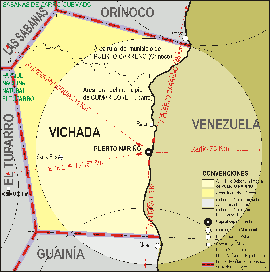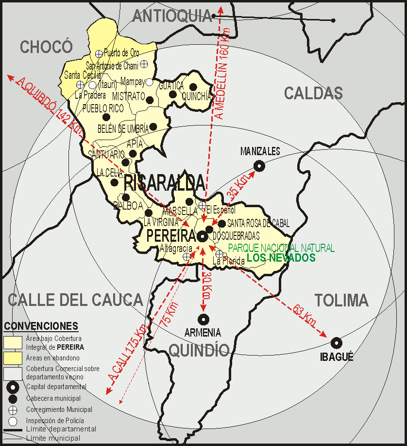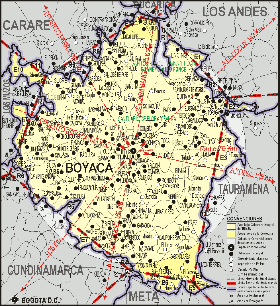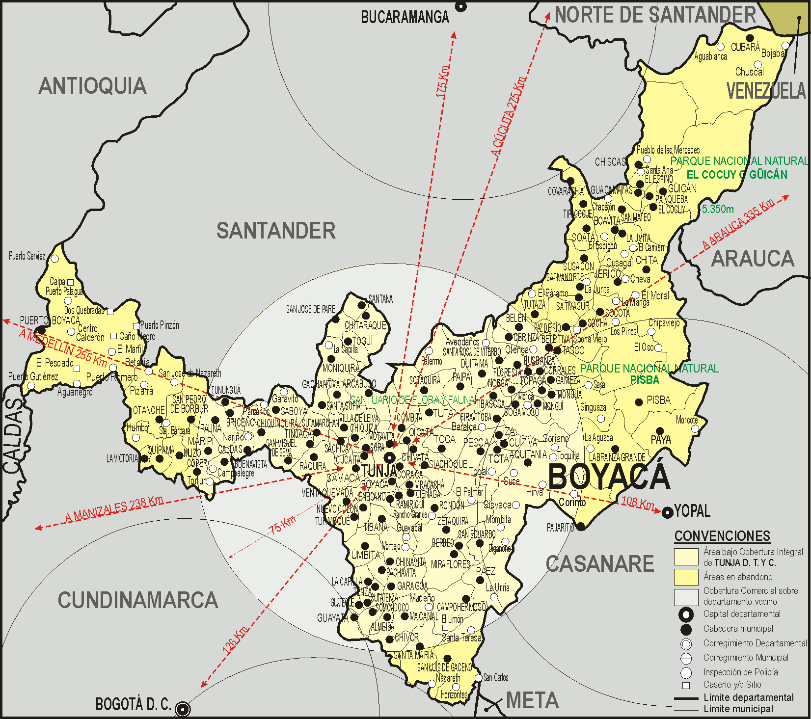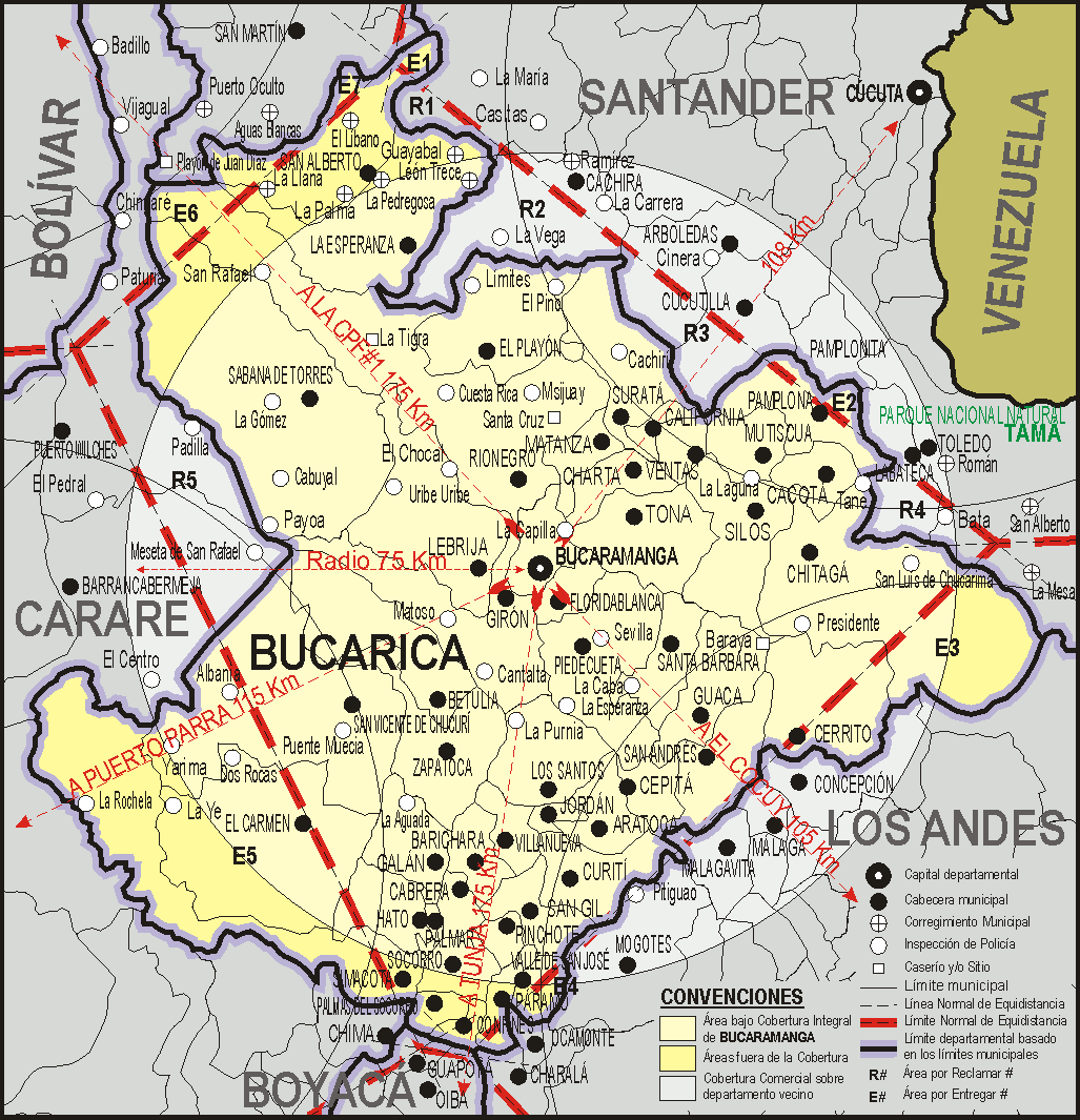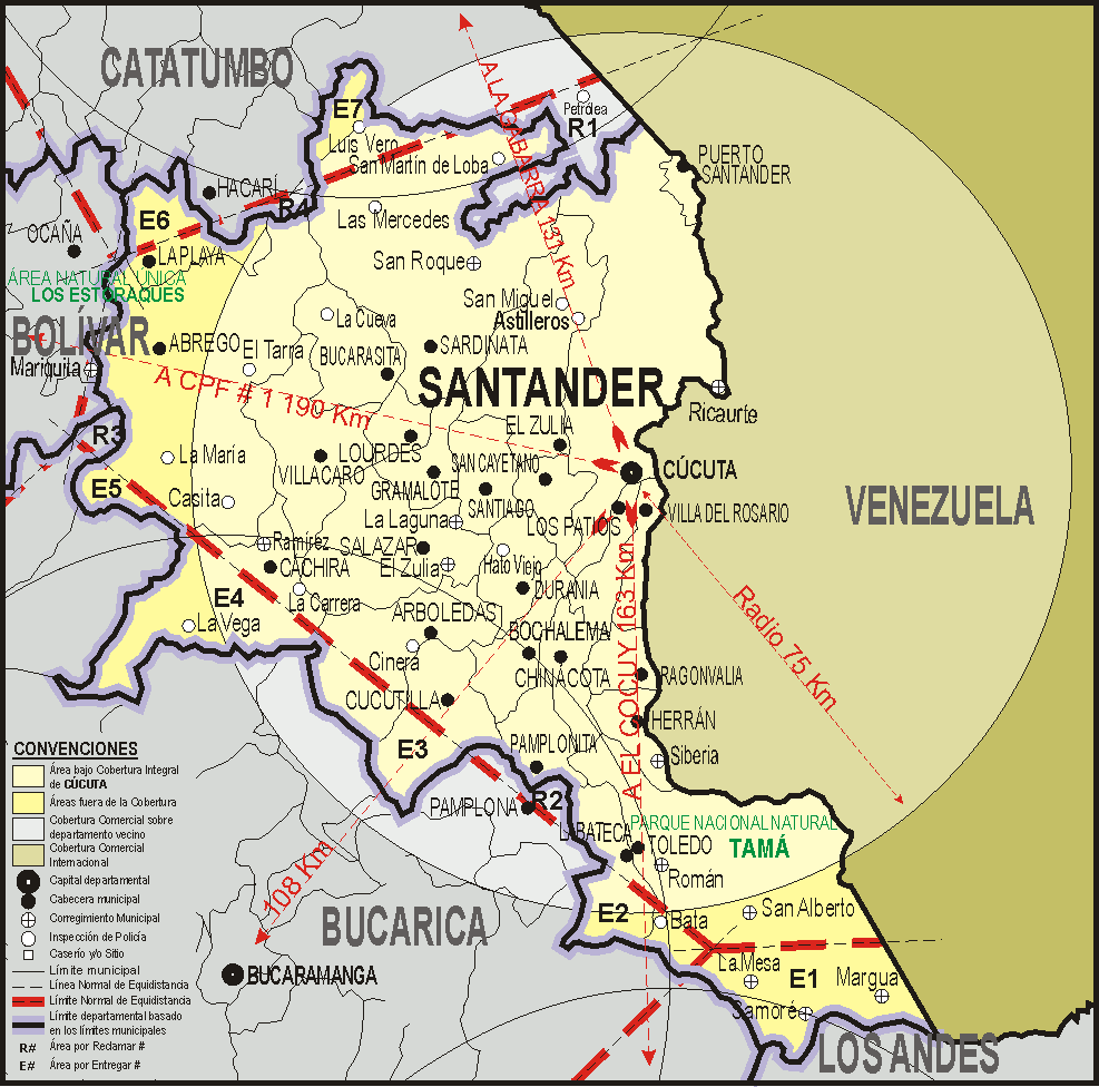 Perimetrales son tomadas desde 1.2 – Las Distancias intercapitales son tomadas en línea recta entre las capitales de los departamentos vecinos. Sirven para determinar las frecuencias de movimiento que permiten en función de su extensión. Este estudio se desarrolla para determinar las áreas resultantes al aplicar el concepto de Distancia Natural sobre los mapas de las Entidades Territoriales. 2.1 – El Área de cobertura de