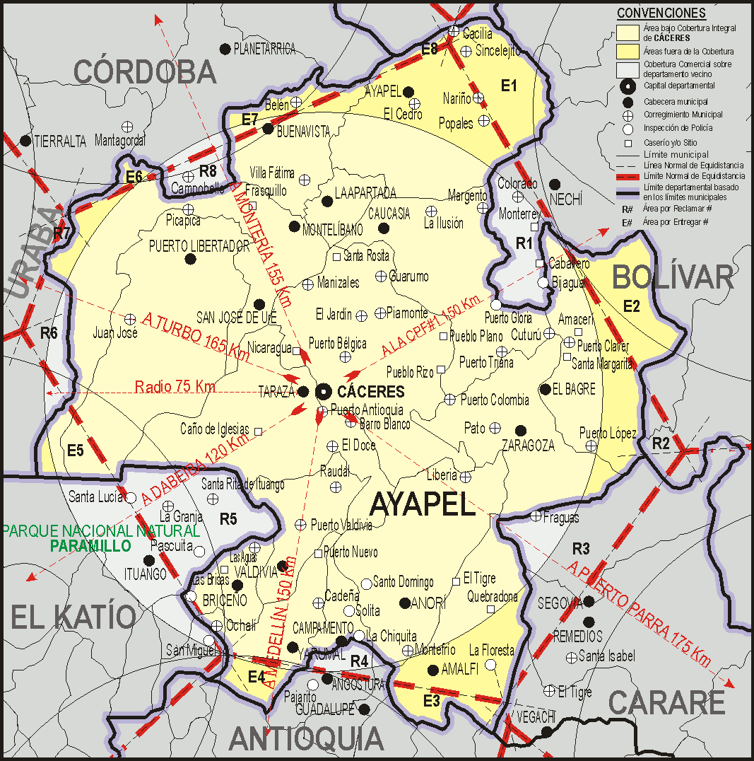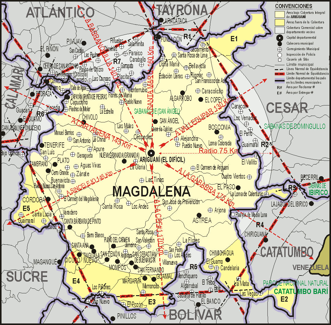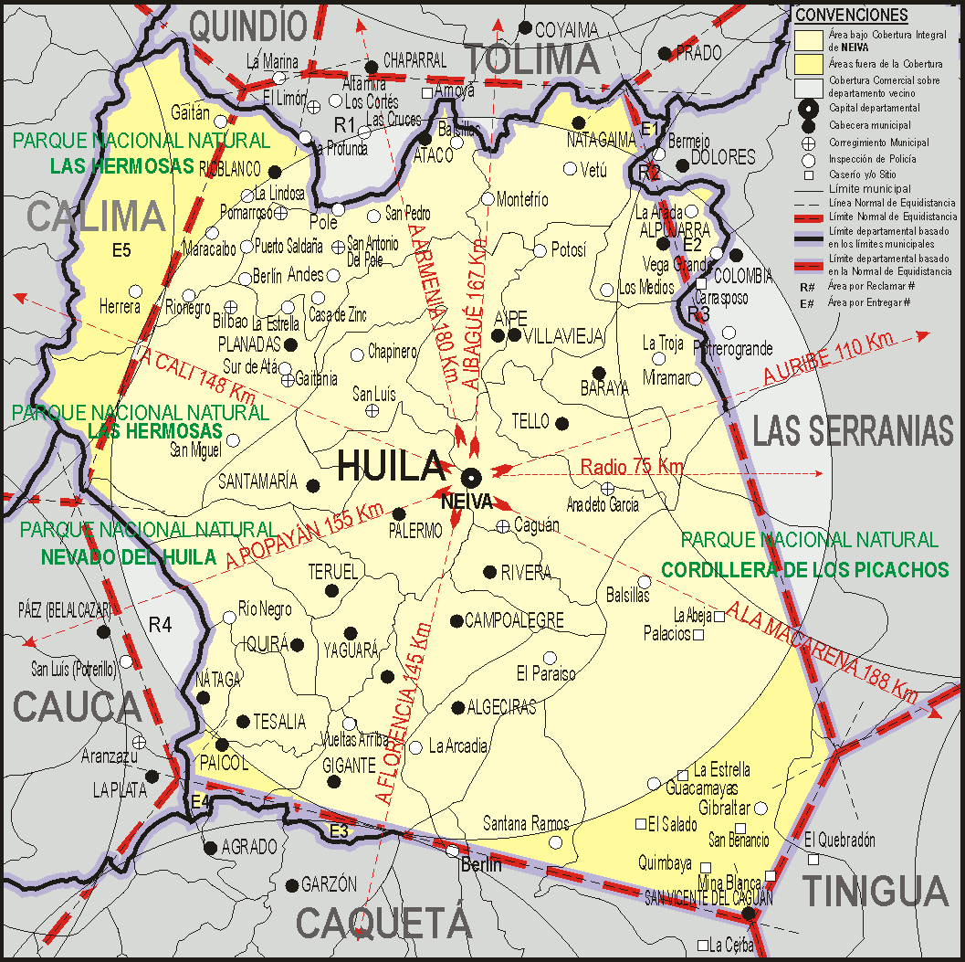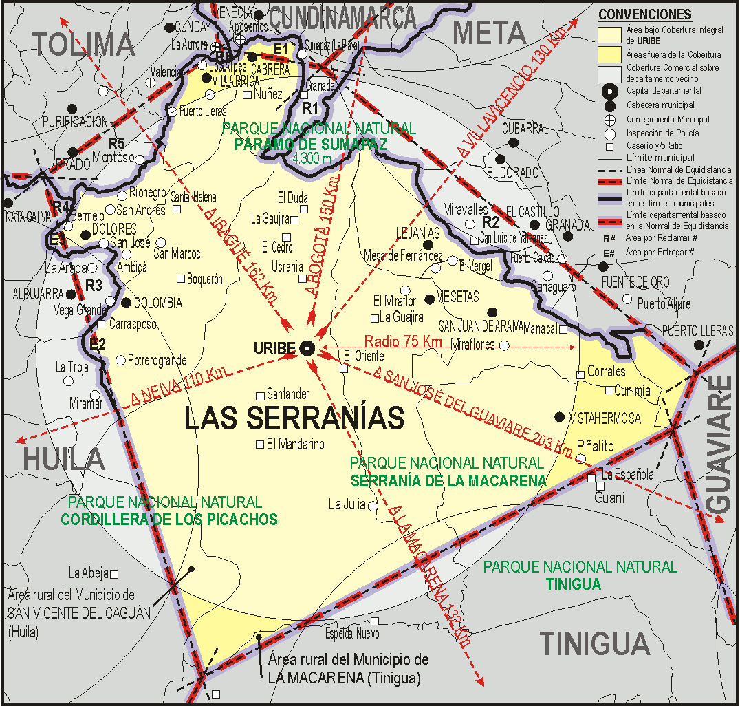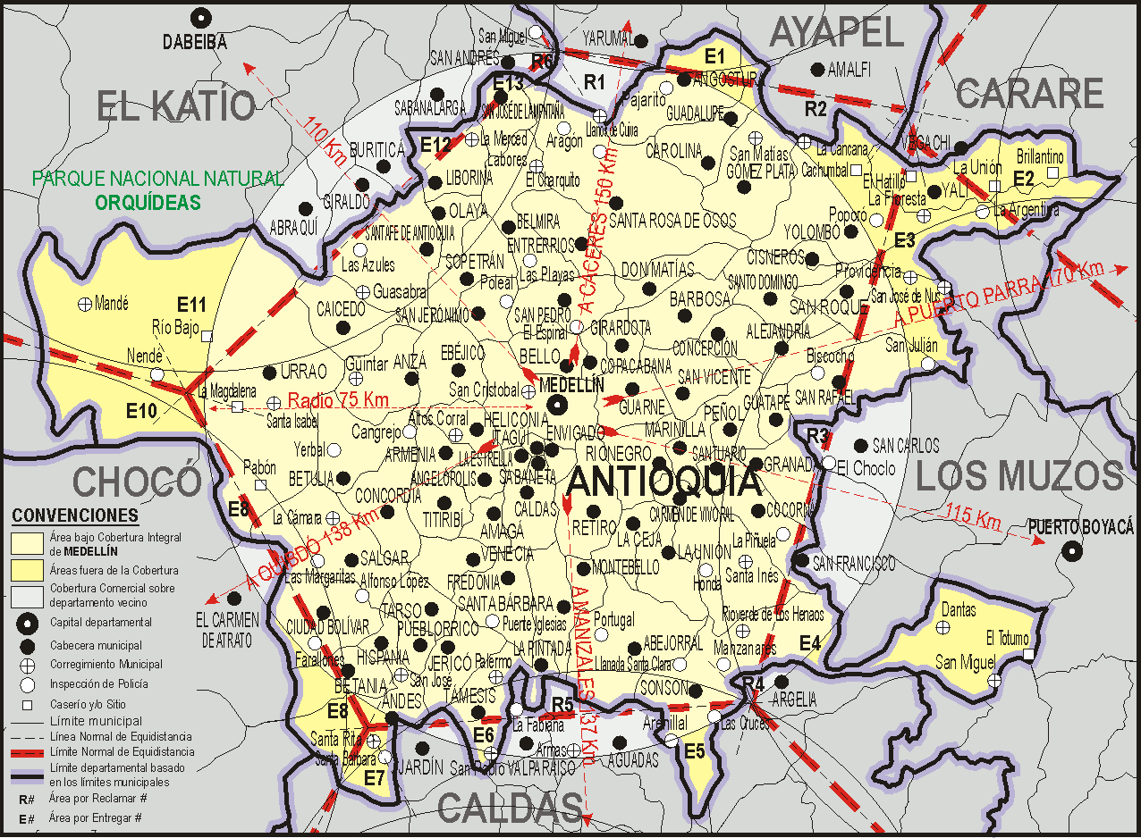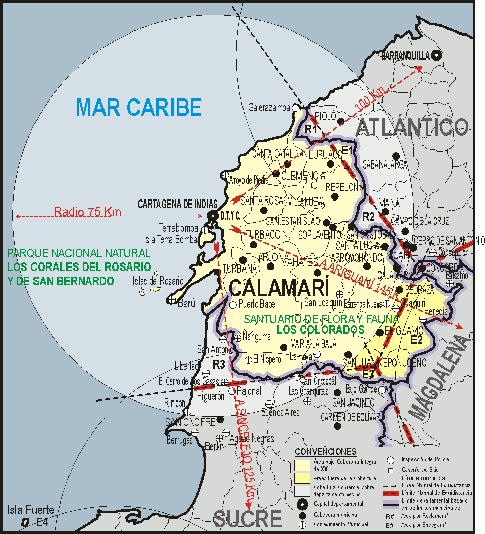Perimetrales son tomadas desde 1.2 – Las Distancias intercapitales son tomadas en línea recta entre las capitales de los departamentos vecinos. Sirven para determinar las frecuencias de movimiento que permiten en función de su extensión. Este estudio se desarrolla para determinar las áreas resultantes al aplicar el concepto de Distancia Natural sobre los mapas de las Entidades Territoriales. 2.1 – El Área de cobertura de