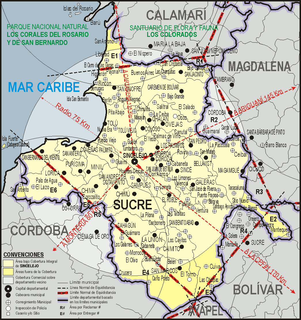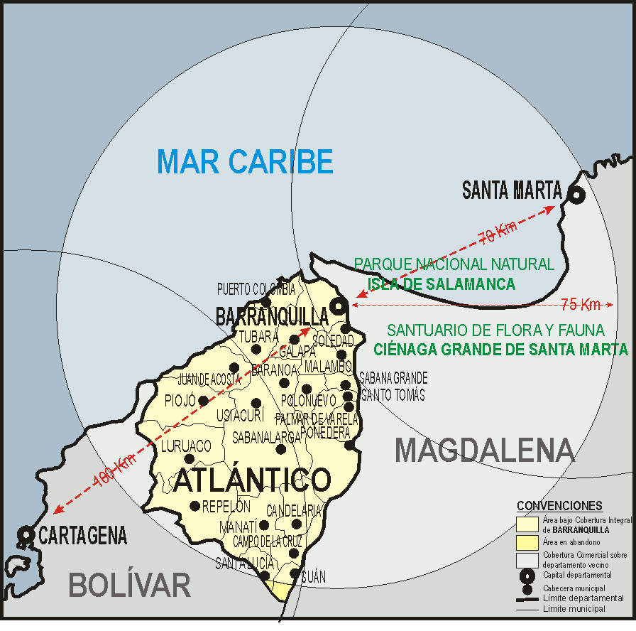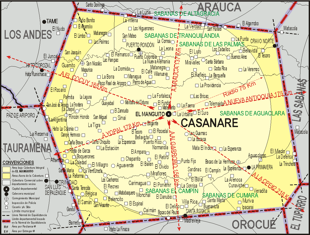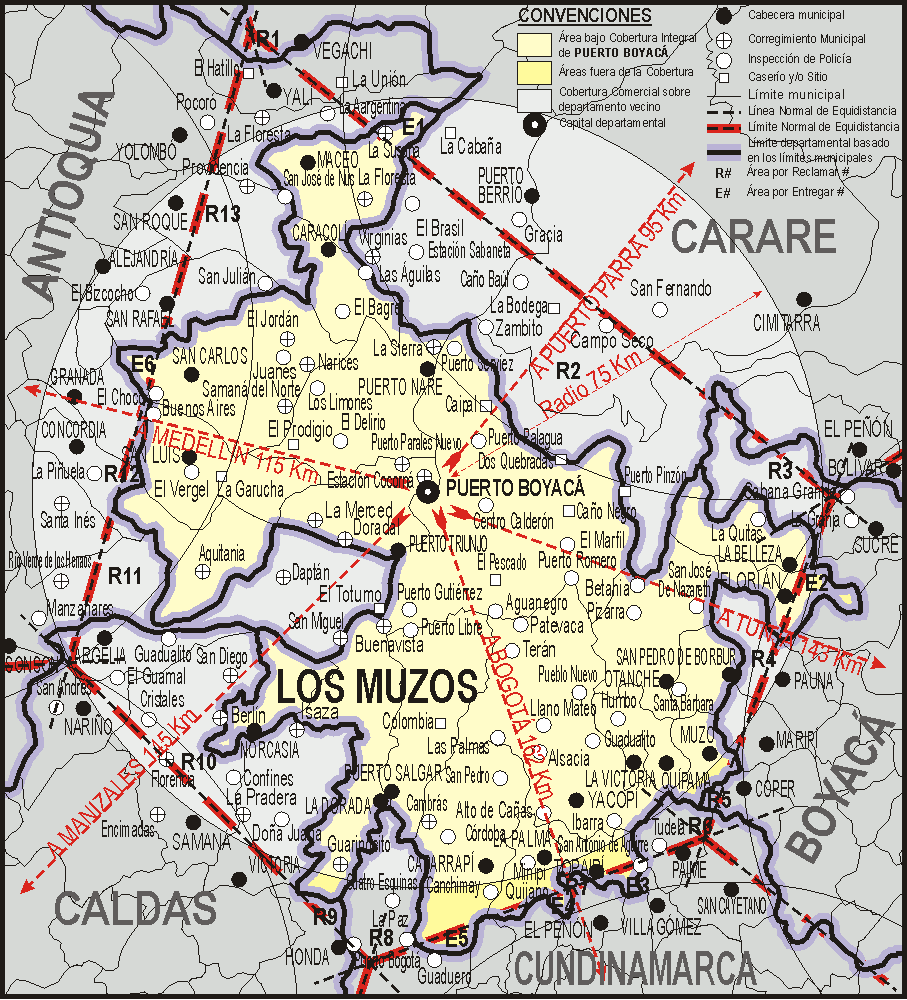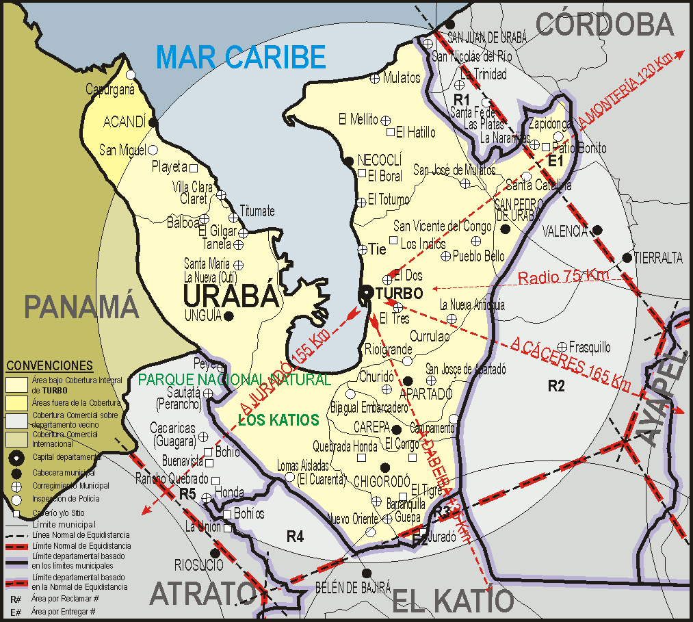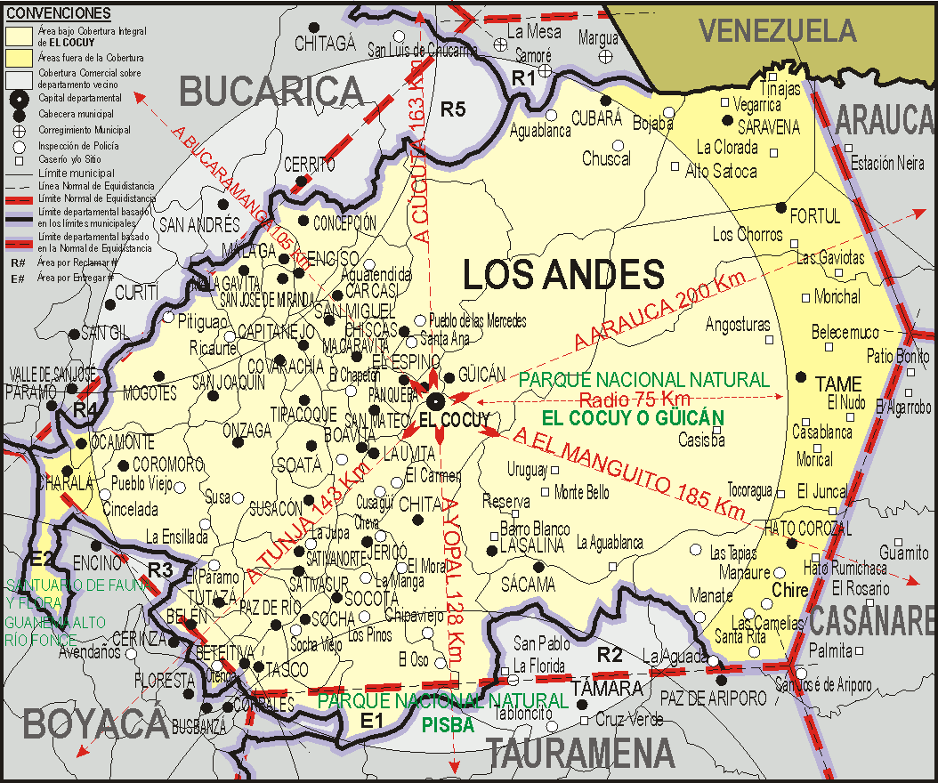 Perimetrales son tomadas desde 1.2 – Las Distancias intercapitales son tomadas en línea recta entre las capitales de los departamentos vecinos. Sirven para determinar las frecuencias de movimiento que permiten en función de su extensión. Este estudio se desarrolla para determinar las áreas resultantes al aplicar el concepto de Distancia Natural sobre los mapas de las Entidades Territoriales. 2.1 – El Área de cobertura de