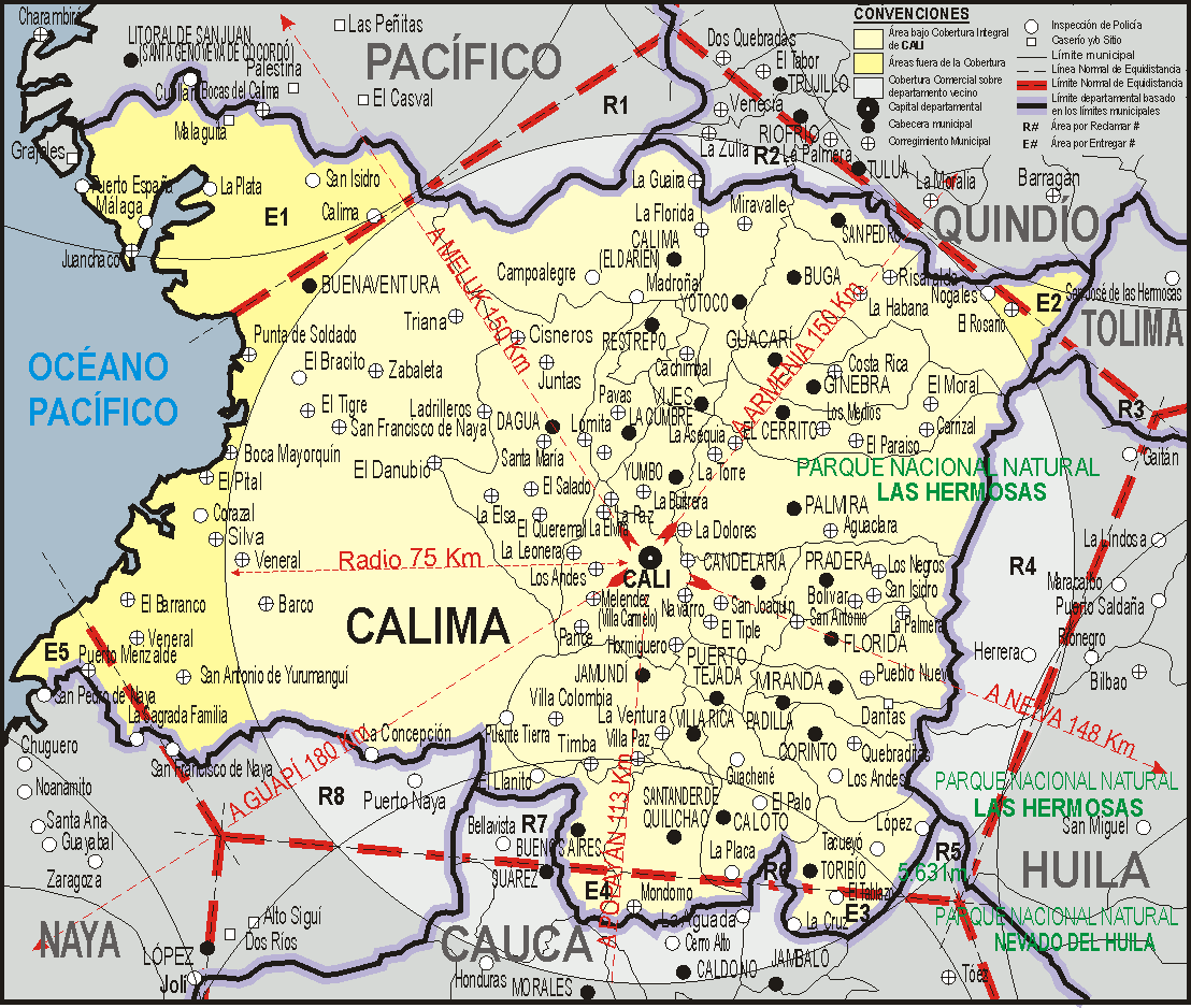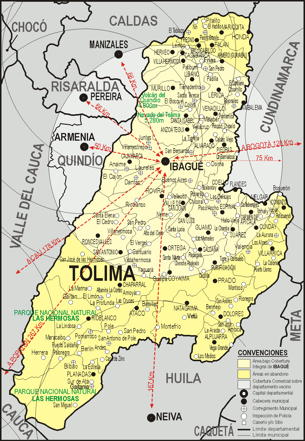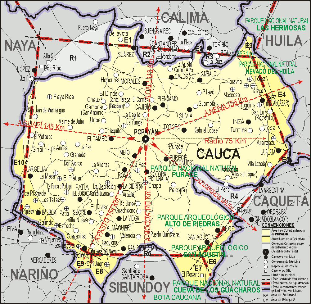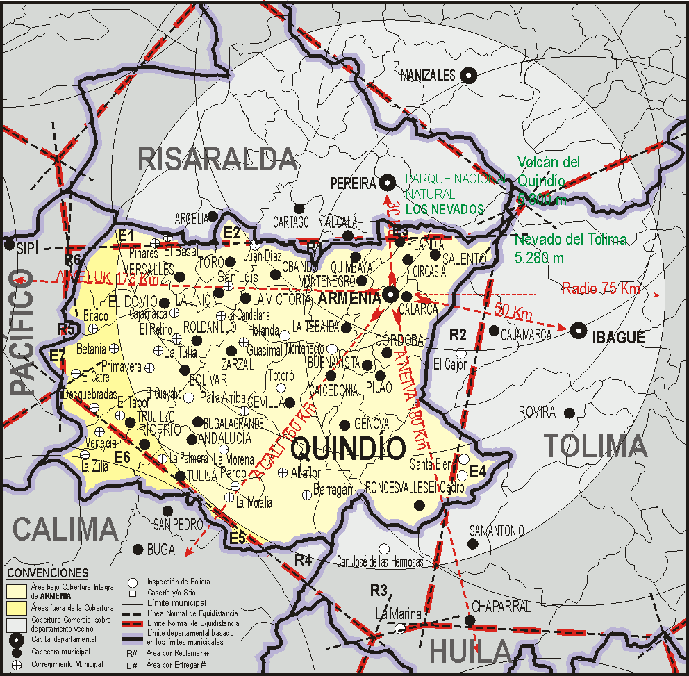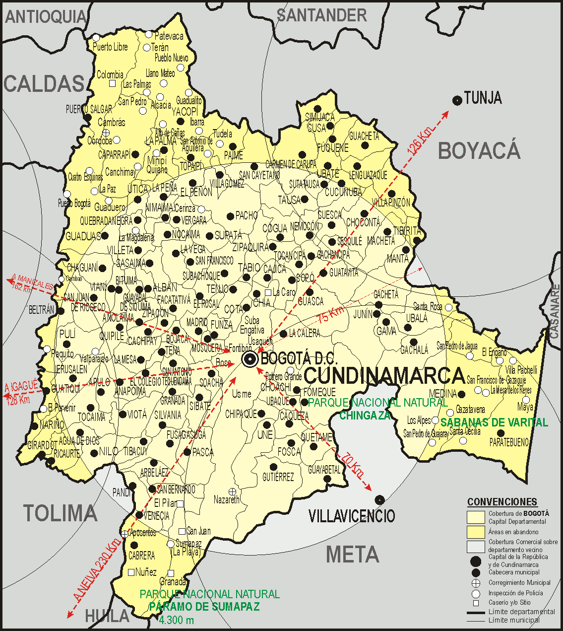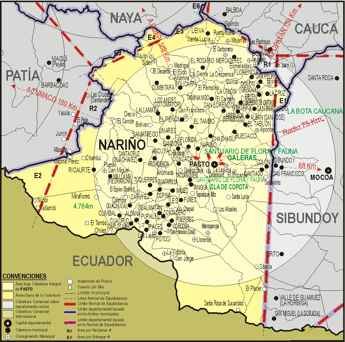 Perimetrales son tomadas desde 1.2 – Las Distancias intercapitales son tomadas en línea recta entre las capitales de los departamentos vecinos. Sirven para determinar las frecuencias de movimiento que permiten en función de su extensión. Este estudio se desarrolla para determinar las áreas resultantes al aplicar el concepto de Distancia Natural sobre los mapas de las Entidades Territoriales. 2.1 – El Área de cobertura de